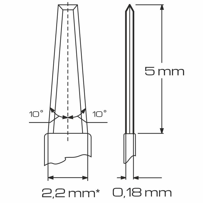 - Алмазные лезвия могут быть изготовлены шириной от 1.0 до 2.5 мм с шагом 0.1 мм.