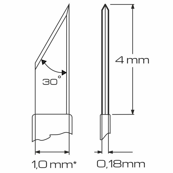 Общая длина 120 мм - Лезвие из алмаза с вертикальной и скошенной под углом 45 градусов границами