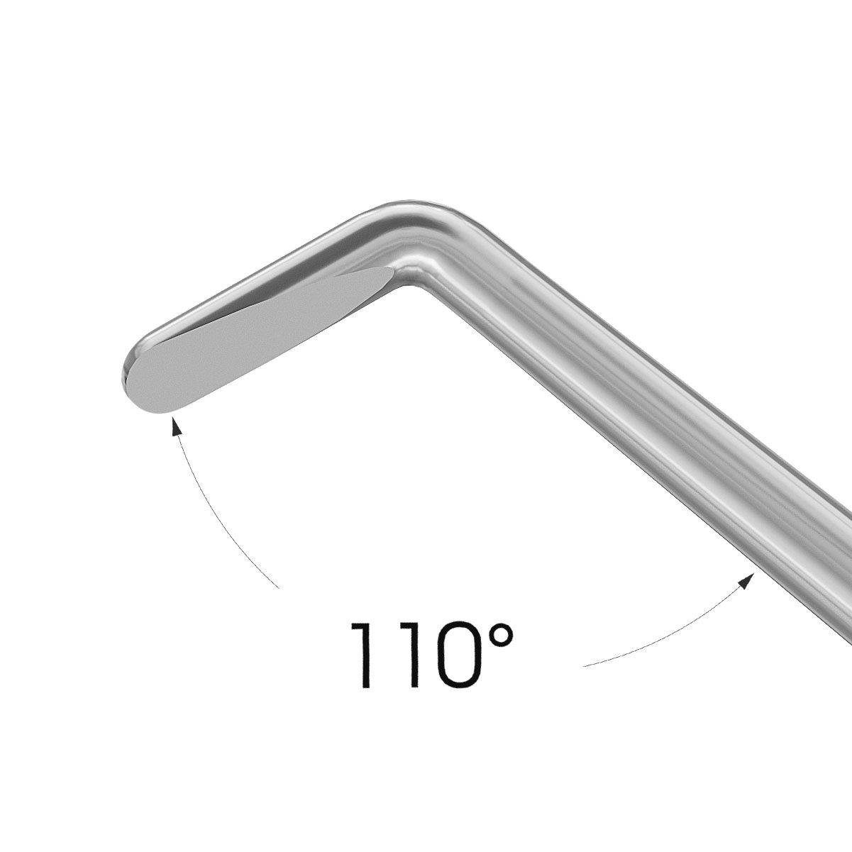 Общая длина 112 мм - Стальной кончик длиной L = 1.25 мм от кончика до сгиба - Круглая титановая ручка Ø5 мм