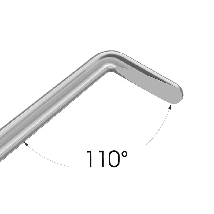 Общая длина: 112 мм Рабочая часть: стальная, изогнутая Кончик: 1.6 х 0.7 x 0.25 мм Ручка: круглая, титановая, Ø5 мм