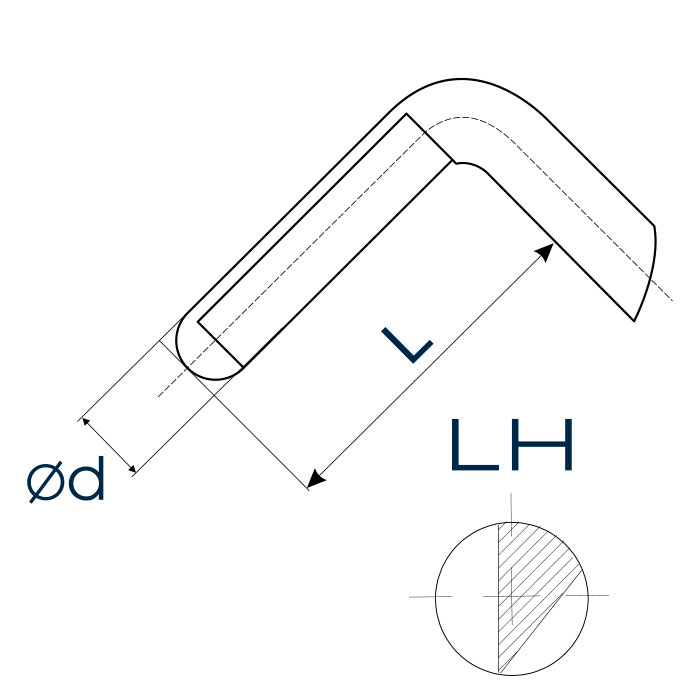- Стальной кончик d = Ø0.25 мм длиной L = 1.95 мм от кончика до сгиба