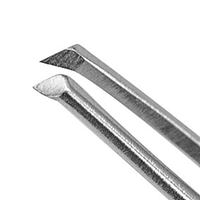 Общая длина: 102 мм Рабочая часть: длина 12.6 мм, изогнутая по радиусу Ручка: плоская, стальная, ширина 10 мм Кончики с канавкой