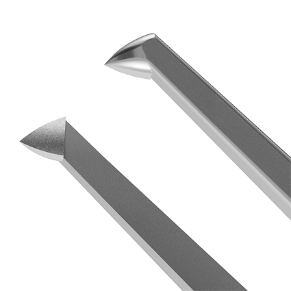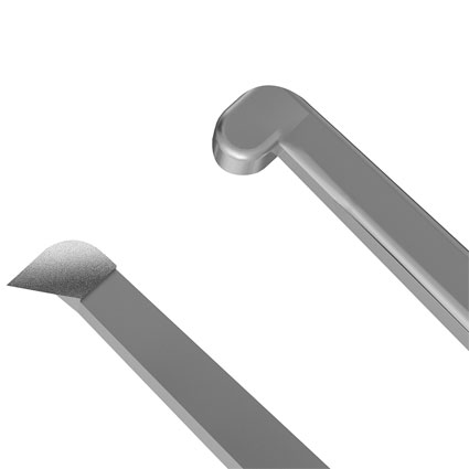 Общая длина: 102 мм Рабочая часть: изогнутая по радиусу, длина 11мм Кончики: покрыты карбидом вольфрама Ручка: плоская, ширина 10 мм