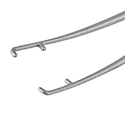 Общая длина 87 мм - 1х1 кончики типа Пирса, с выемкой 0.1 мм - Платформы, покрытые карбидом вольфрама - Платформы для нитей длиной 2.5 мм - Плоская ручка шириной 7 мм - Концы шириной 0.2 мм