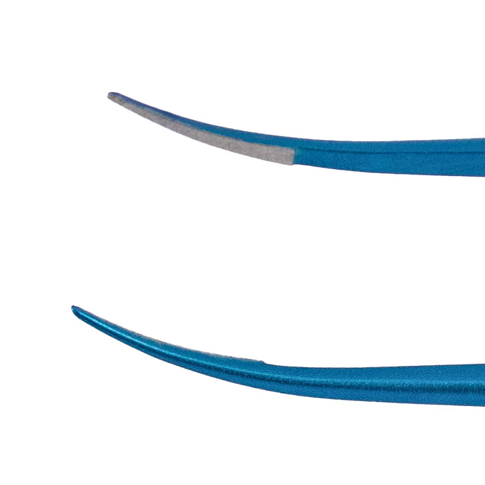 Общая длина: 125 мм Рабочая часть: тонкая, изогнутая, длина 11 мм, ширина 0.6 мм Ручка: круглая, стальная, Ø8 мм Губки покрыты карбидом вольфрама