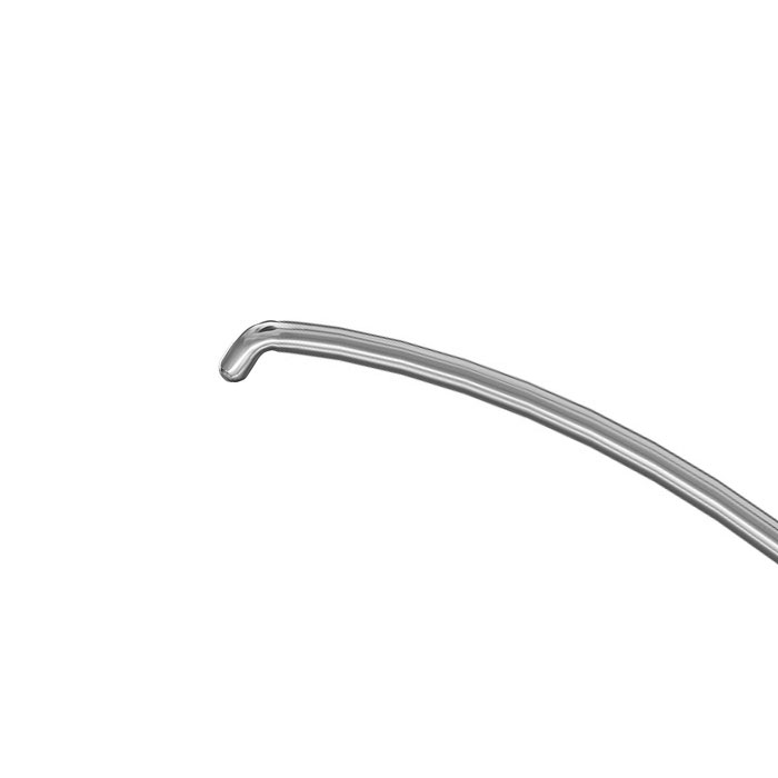 Общая длина: 115 мм Рабочая часть: титановая, изогнутая Кончик: Ø0.2 мм, длина 12 мм от кончика до сгиба Ручка: круглая, титановая, Ø5 мм