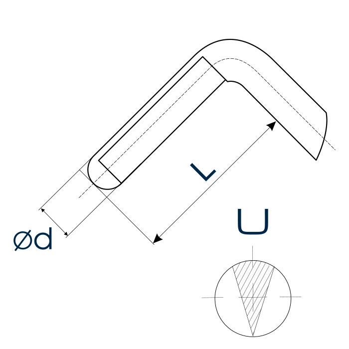 - Стальной кончик d = Ø0.25 мм длиной L = 0.75 мм от кончика до сгиба