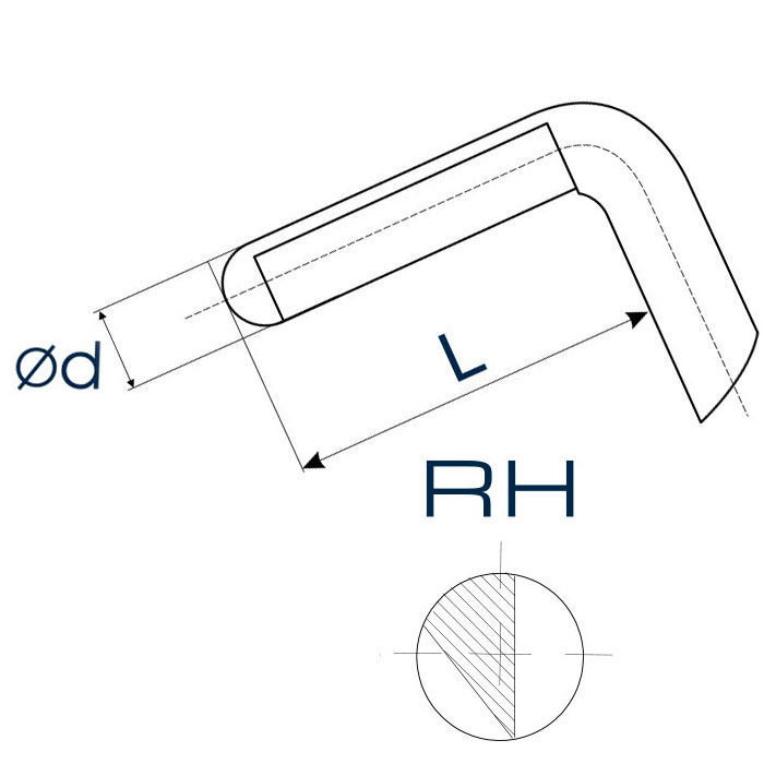 - Титановый кончик d = Ø0.3 мм длиной L = 1.45 мм от кончика до сгиба