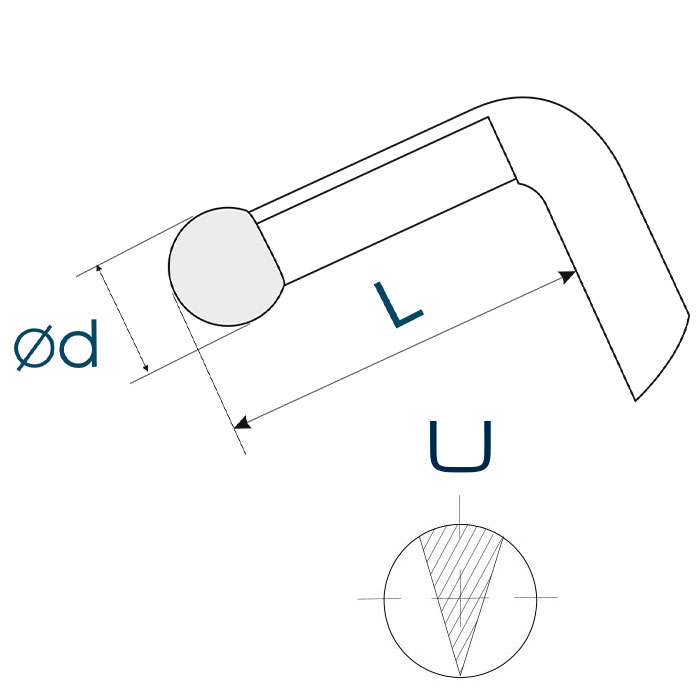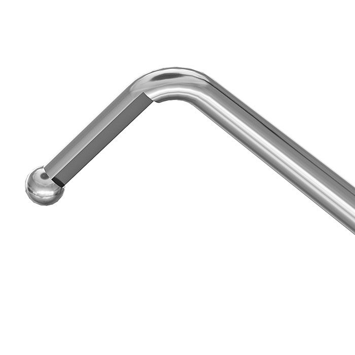 Общая длина 112 мм - Стальной кончик (шарик) d = Ø0.45 мм длиной L = 1.3 мм от кончика до сгиба - Круглая титановая ручка Ø5 мм |