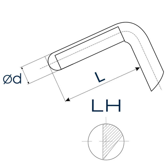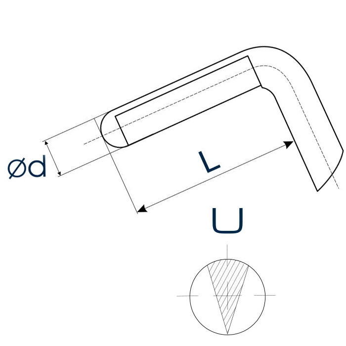 Общая длина 112 мм - Титановый кончик d = Ø0.3 мм длиной L = 1.7 мм от кончика до сгиба - Круглая титановая ручка Ø5 мм |