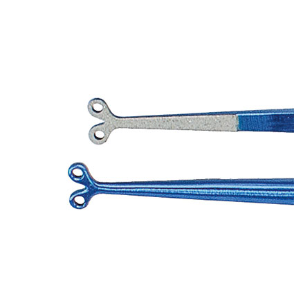 Общая длина 87 мм - 1х1 кончики типа Пирса, с выемкой 0.1 мм - Платформы, покрытые карбидом вольфрама - Платформы для нитей длиной 2.5 мм - Плоская ручка шириной 7 мм - Концы шириной 0.2 мм |